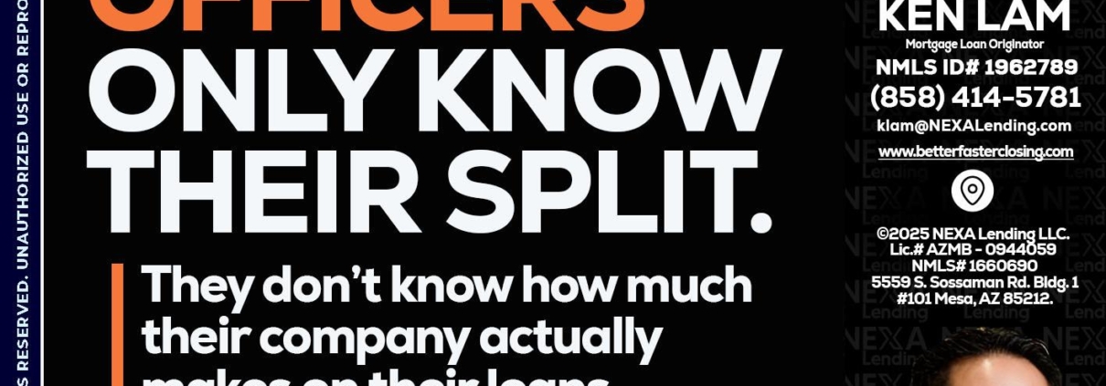 1 OF 3 - Ken Lam -Mortgage Loan OfficerHi, my name is Ken Lam. I’m a Loan Officer with NEXA Lending LLC., offering personalized mortgage solutions, fast customized quotes, great rates and service with integrity.
