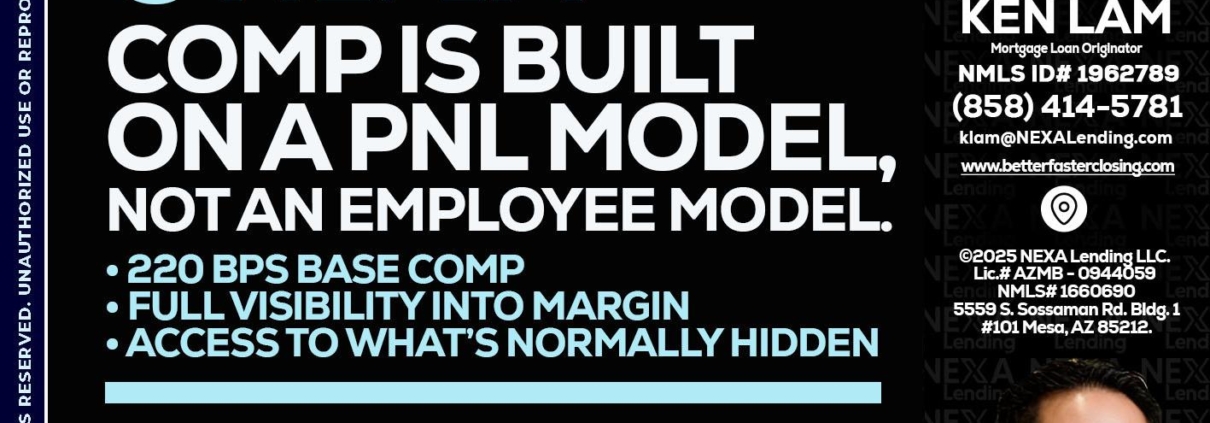 2 OF 3 - Ken Lam -Mortgage Loan OfficerHi, my name is Ken Lam. I’m a Loan Officer with NEXA Lending LLC., offering personalized mortgage solutions, fast customized quotes, great rates and service with integrity.