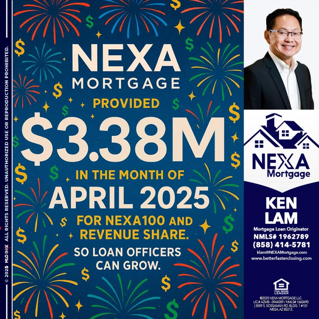 Hi, my name is Ken Lam. I’m a Loan Officer with NEXA Mortgage LLC., offering personalized mortgage solutions, fast customized quotes, great rates and service with integrity.