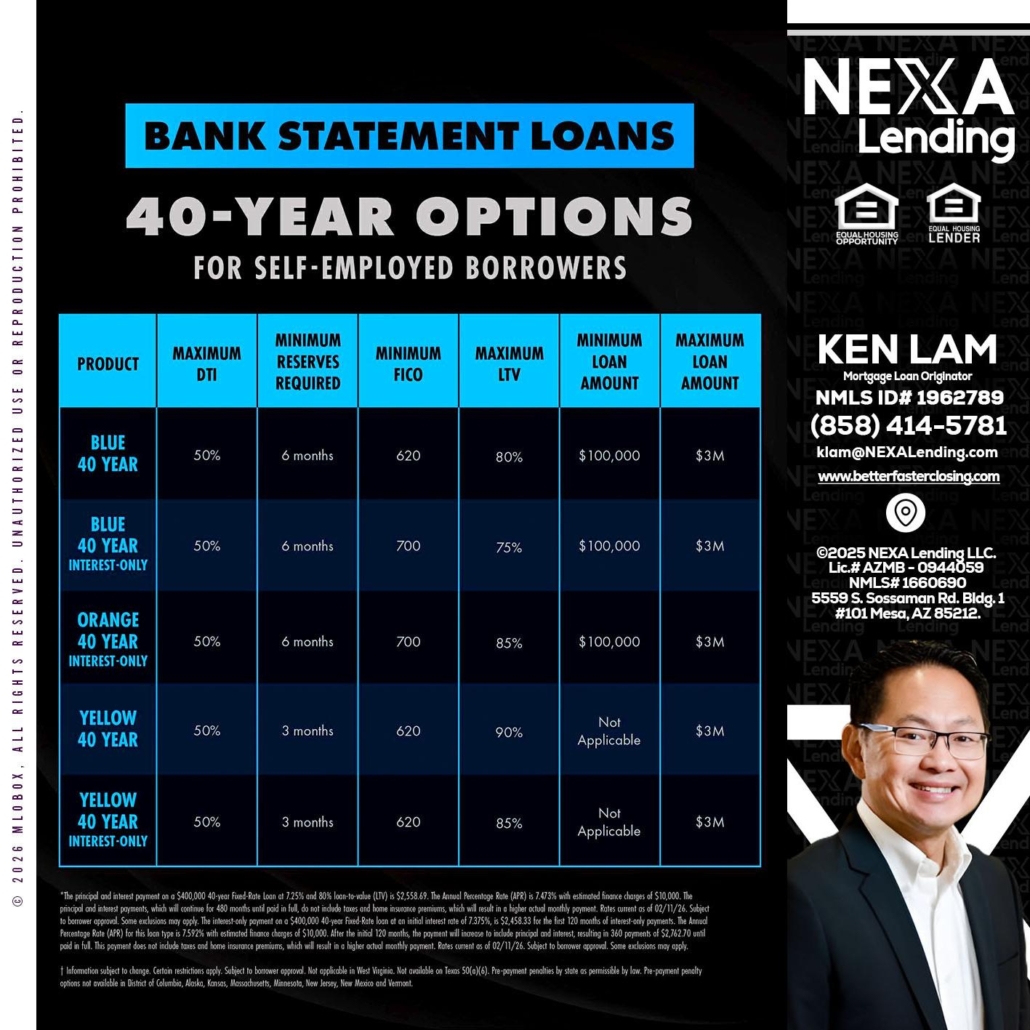 Hi, my name is Ken Lam. I’m a Loan Officer with NEXA Lending LLC., offering personalized mortgage solutions, fast customized quotes, great rates and service with integrity.