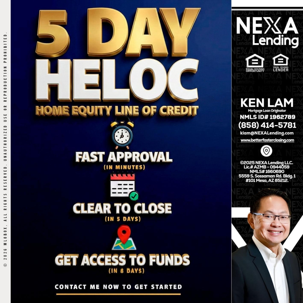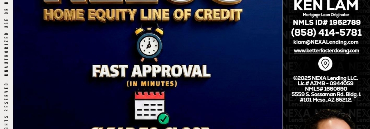 Hi, my name is Ken Lam. I’m a Loan Officer with NEXA Lending LLC., offering personalized mortgage solutions, fast customized quotes, great rates and service with integrity.
