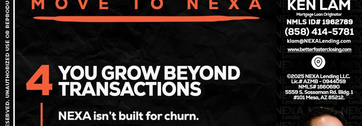 Hi, my name is Ken Lam. I’m a Loan Officer with NEXA Lending LLC., offering personalized mortgage solutions, fast customized quotes, great rates and service with integrity.