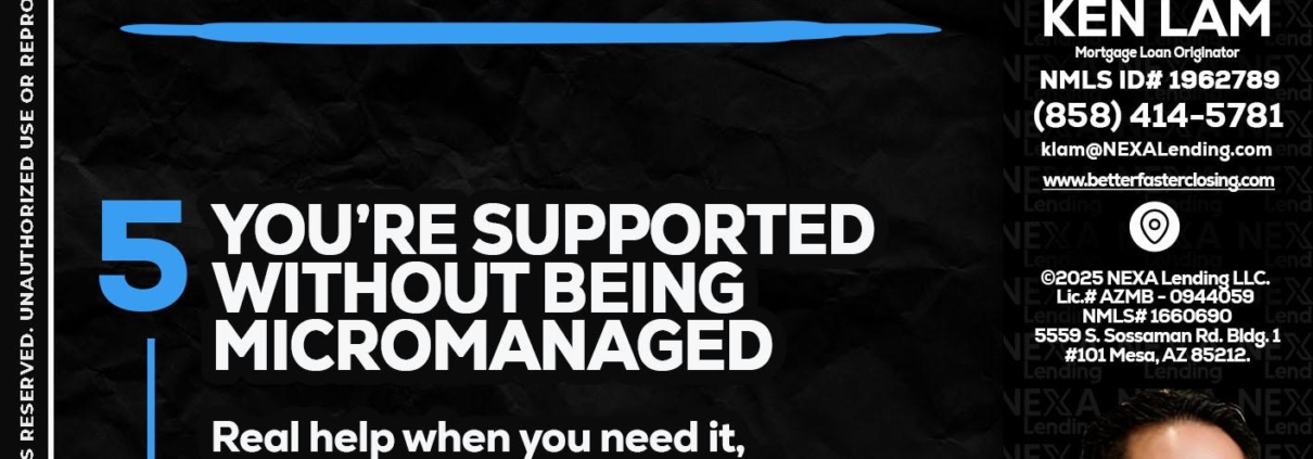 Hi, my name is Ken Lam. I’m a Loan Officer with NEXA Lending LLC., offering personalized mortgage solutions, fast customized quotes, great rates and service with integrity.