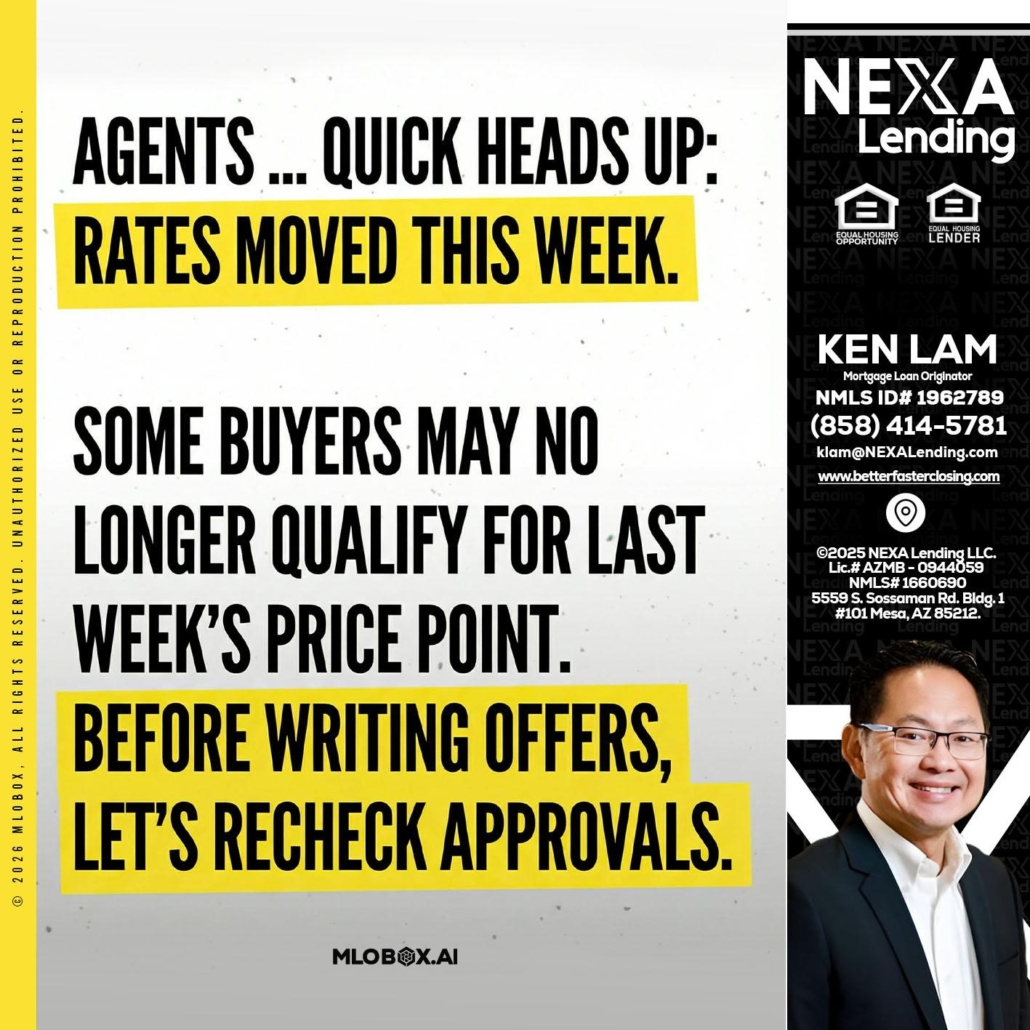 Hi, my name is Ken Lam. I’m a Loan Officer with NEXA Lending LLC., offering personalized mortgage solutions, fast customized quotes, great rates and service with integrity.