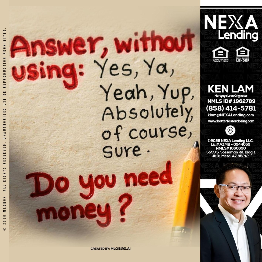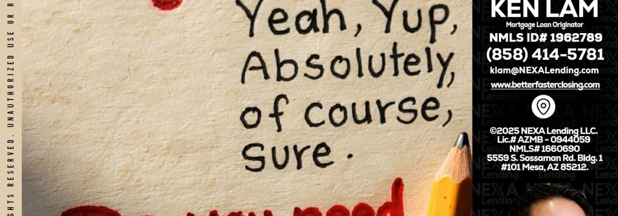 Hi, my name is Ken Lam. I’m a Loan Officer with NEXA Lending LLC., offering personalized mortgage solutions, fast customized quotes, great rates and service with integrity.