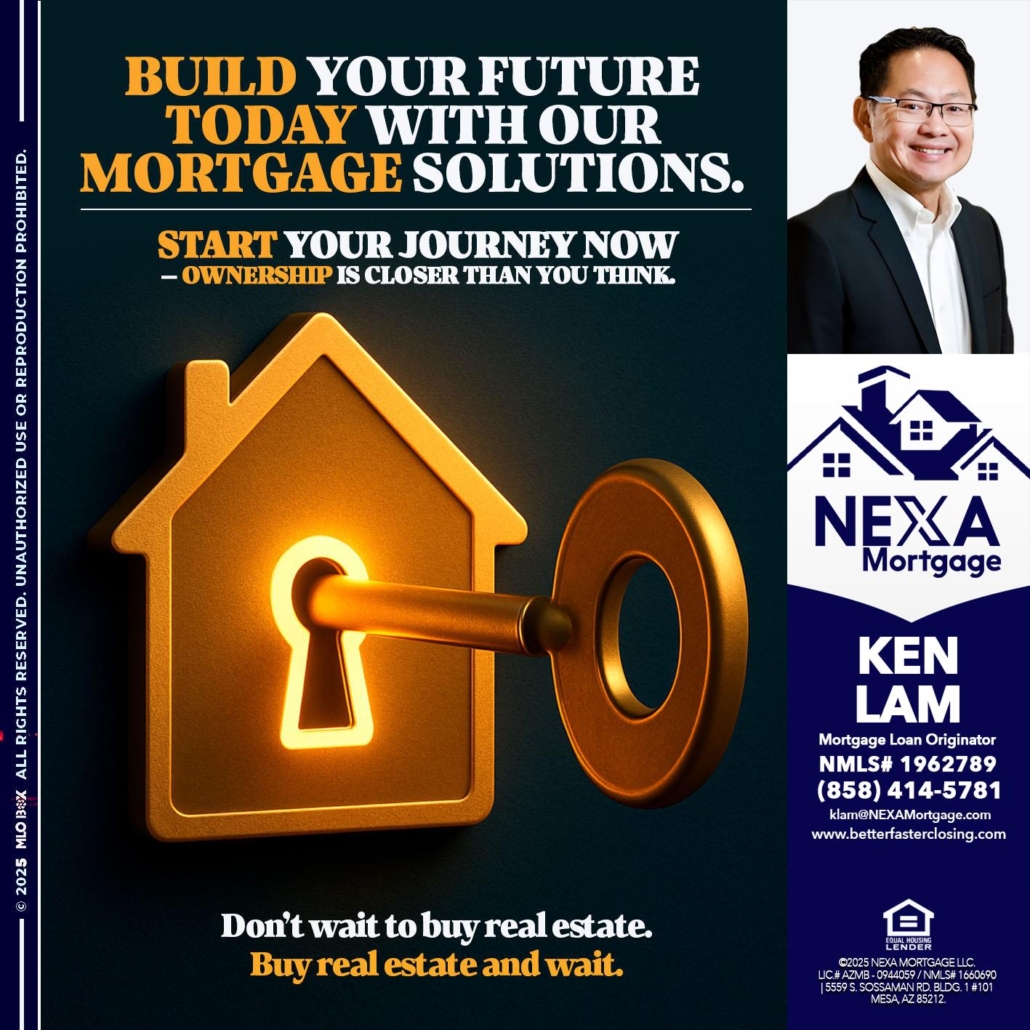 Hi, my name is Ken Lam. I’m a Loan Officer with NEXA Mortgage LLC., offering personalized mortgage solutions, fast customized quotes, great rates and service with integrity.
