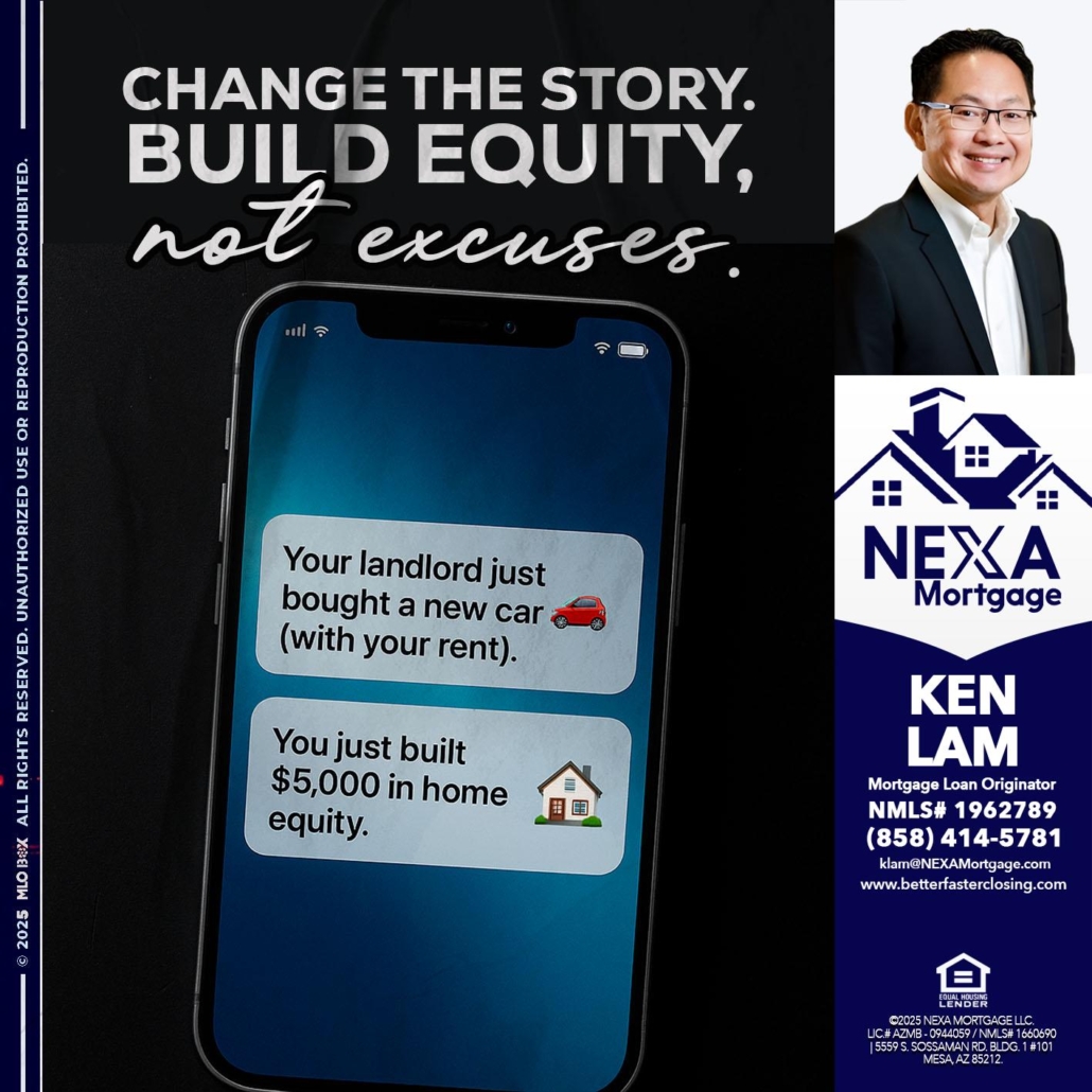 CHANGE THE HISTORY - Ken Lam -Mortgage Loan OfficerHi, my name is Ken Lam. I’m a Loan Officer with NEXA Mortgage LLC., offering personalized mortgage solutions, fast customized quotes, great rates and service with integrity.