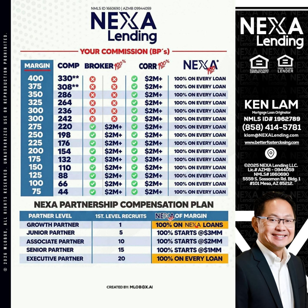 Hi, my name is Ken Lam. I’m a Loan Officer with NEXA Lending LLC., offering personalized mortgage solutions, fast customized quotes, great rates and service with integrity.