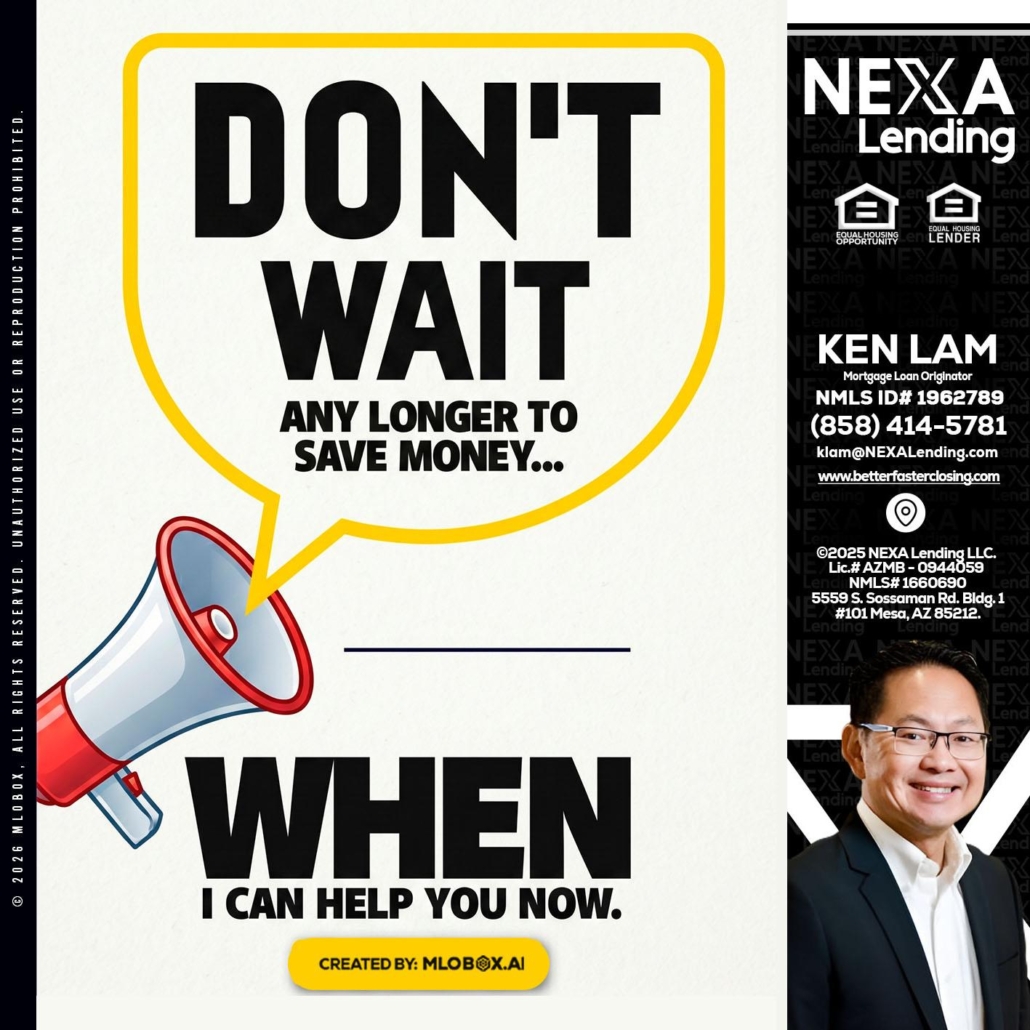 Hi, my name is Ken Lam. I’m a Loan Officer with NEXA Lending LLC., offering personalized mortgage solutions, fast customized quotes, great rates and service with integrity.