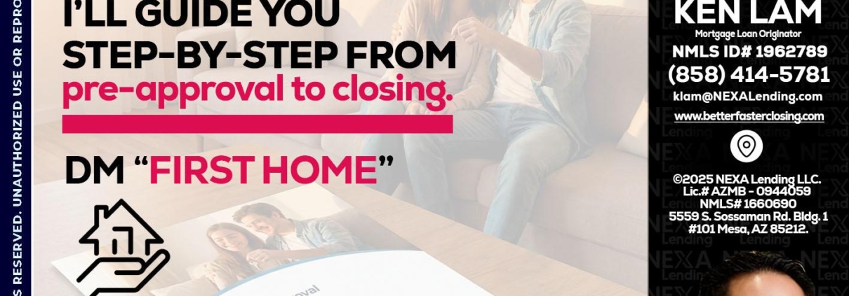 Hi, my name is Ken Lam. I’m a Loan Officer with NEXA Lending LLC., offering personalized mortgage solutions, fast customized quotes, great rates and service with integrity.