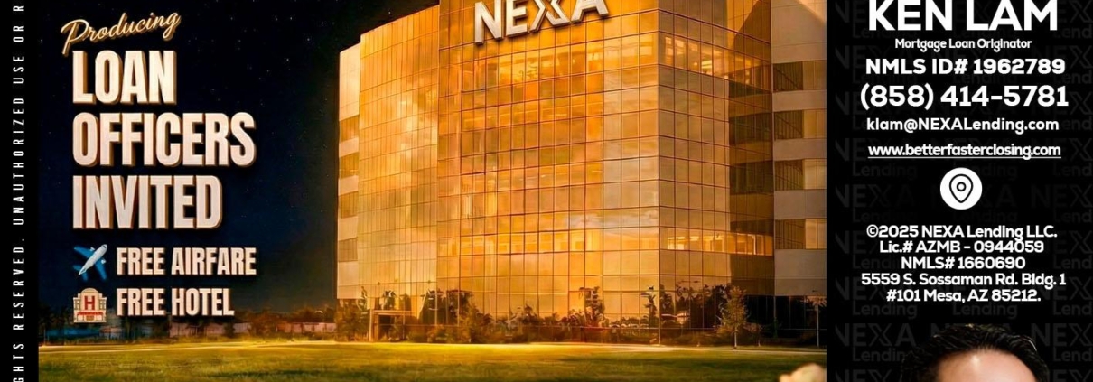 Hi, my name is Ken Lam. I’m a Loan Officer with NEXA Lending LLC., offering personalized mortgage solutions, fast customized quotes, great rates and service with integrity.