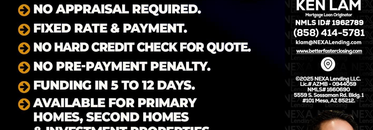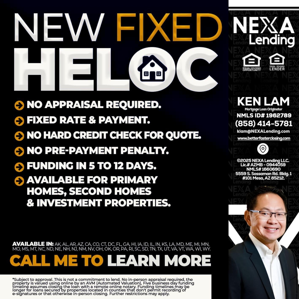Hi, my name is Ken Lam. I’m a Loan Officer with NEXA Lending LLC., offering personalized mortgage solutions, fast customized quotes, great rates and service with integrity.