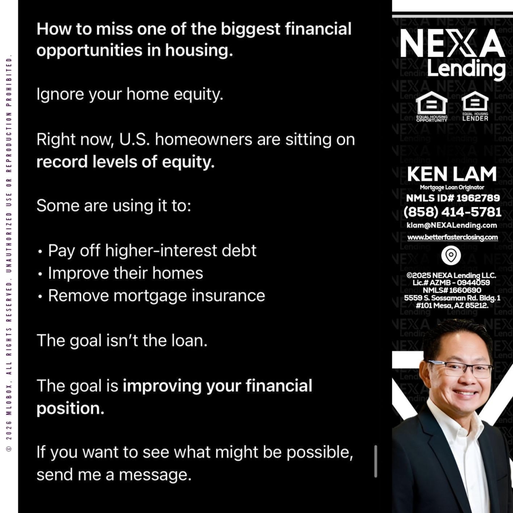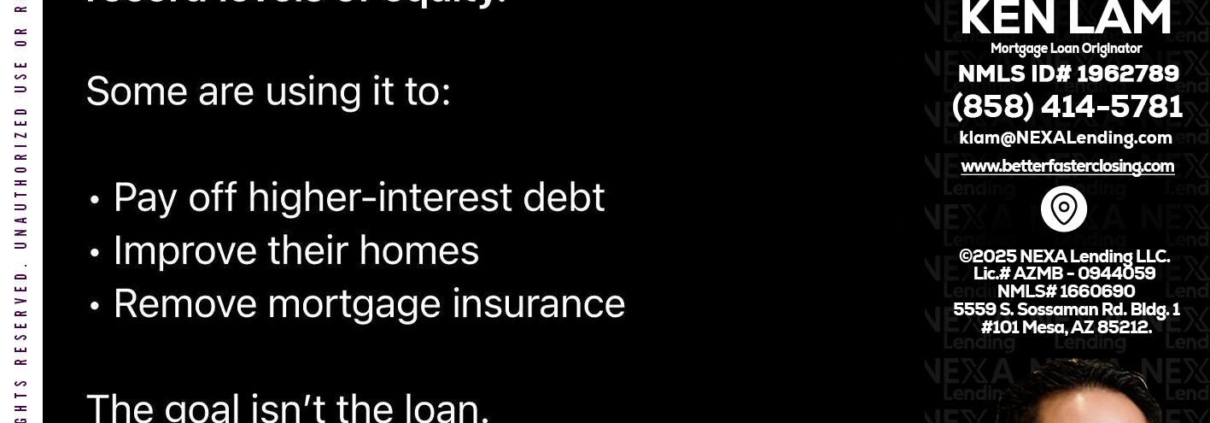 Hi, my name is Ken Lam. I’m a Loan Officer with NEXA Lending LLC., offering personalized mortgage solutions, fast customized quotes, great rates and service with integrity.
