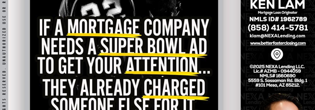 Hi, my name is Ken Lam. I’m a Loan Officer with NEXA Lending LLC., offering personalized mortgage solutions, fast customized quotes, great rates and service with integrity.