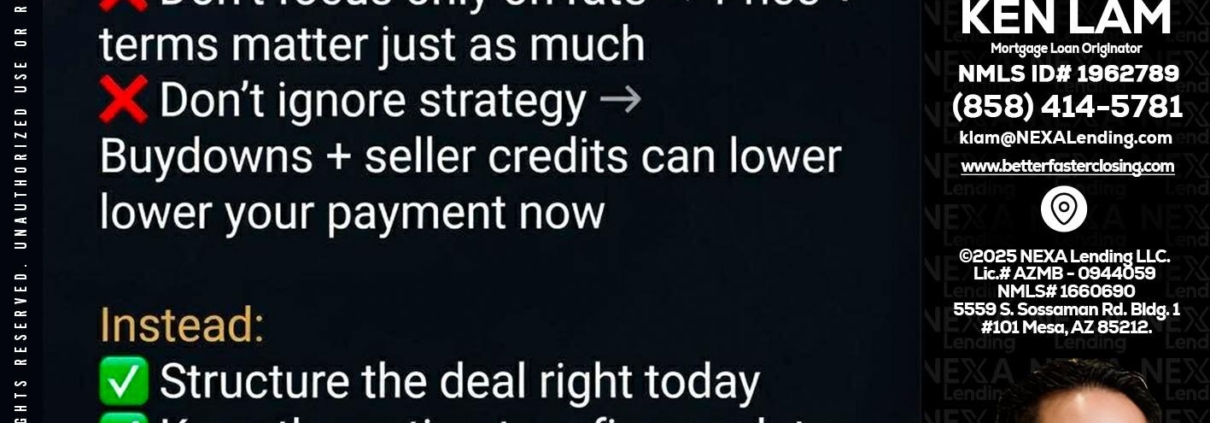 Hi, my name is Ken Lam. I’m a Loan Officer with NEXA Lending LLC., offering personalized mortgage solutions, fast customized quotes, great rates and service with integrity.