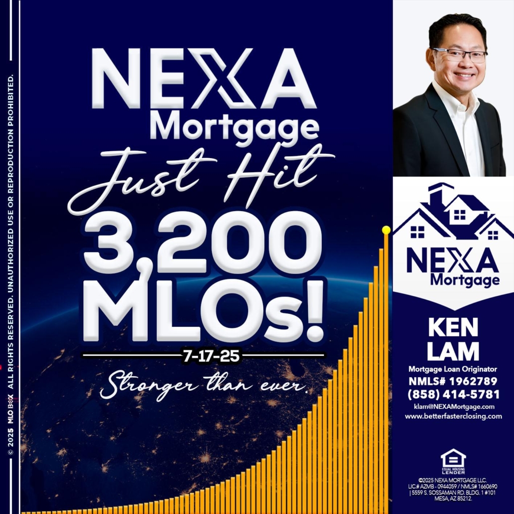 Hi, my name is Ken Lam. I’m a Loan Officer with NEXA Mortgage LLC., offering personalized mortgage solutions, fast customized quotes, great rates and service with integrity.