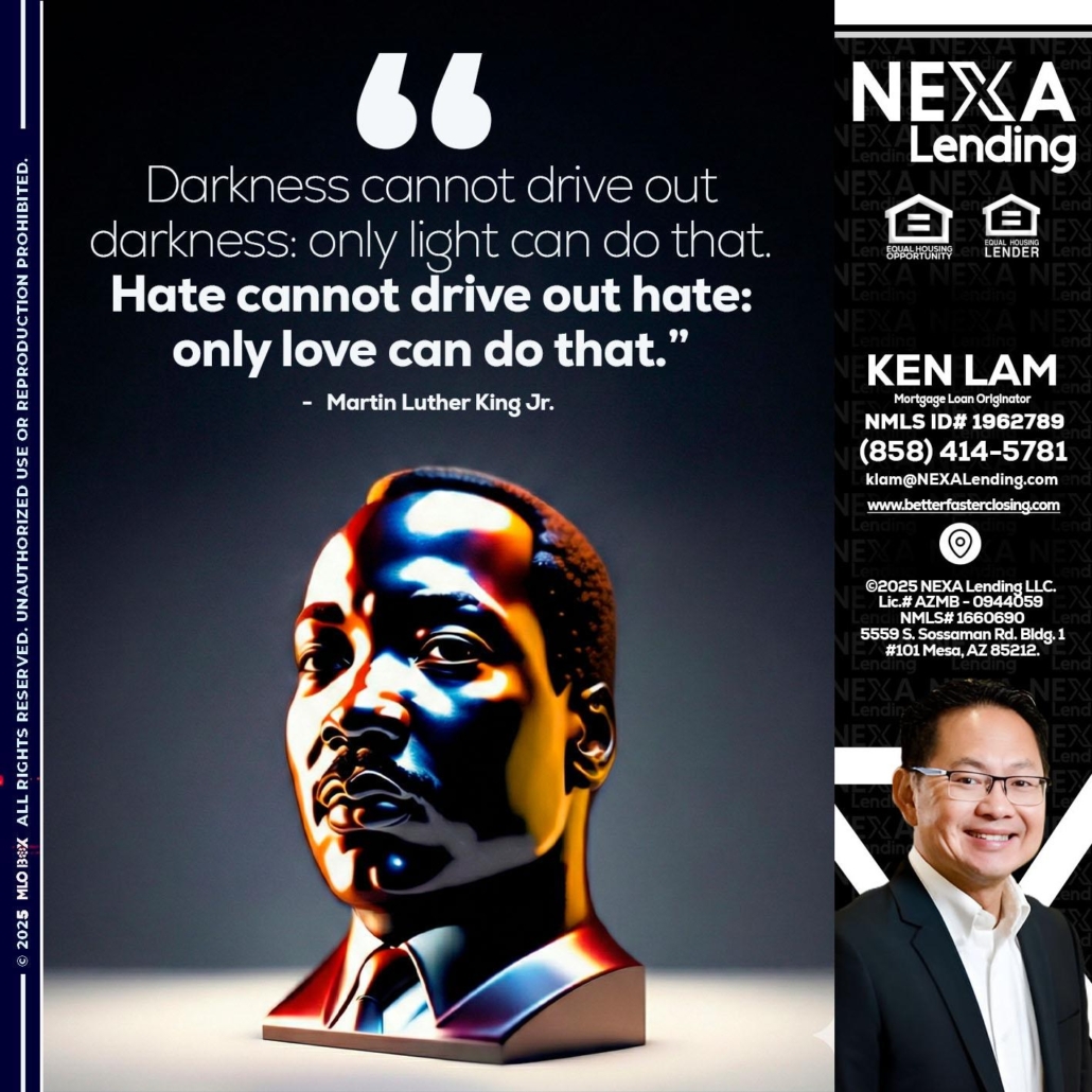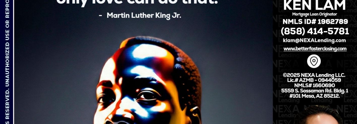 MLK 2026 - Ken Lam -Mortgage Loan OfficerHi, my name is Ken Lam. I’m a Loan Officer with NEXA Lending LLC., offering personalized mortgage solutions, fast customized quotes, great rates and service with integrity.