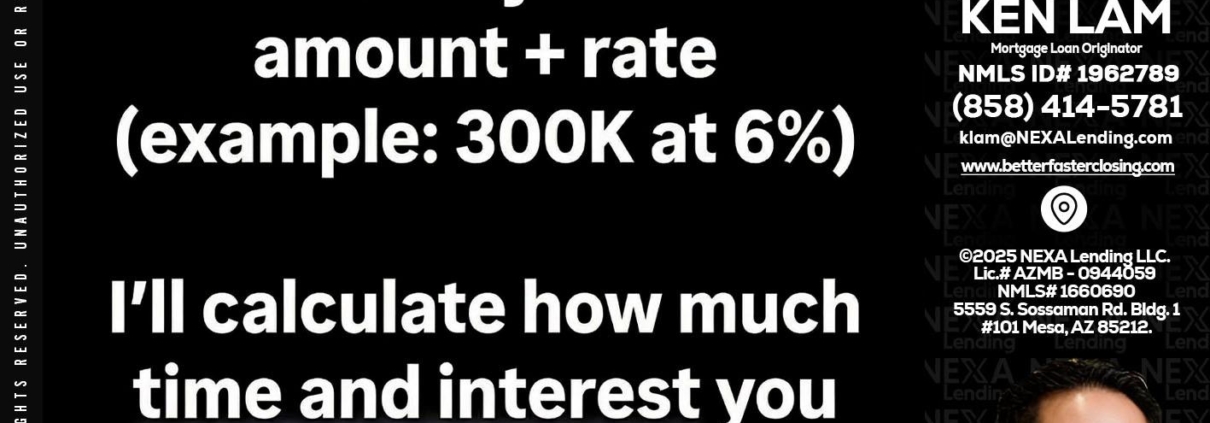 Hi, my name is Ken Lam. I’m a Loan Officer with NEXA Lending LLC., offering personalized mortgage solutions, fast customized quotes, great rates and service with integrity.