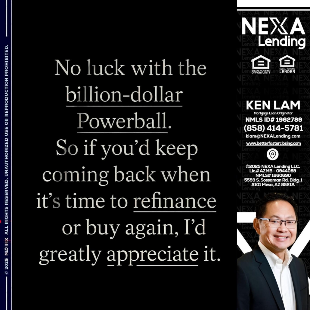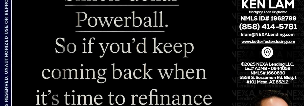Hi, my name is Ken Lam. I’m a Loan Officer with NEXA Lending LLC., offering personalized mortgage solutions, fast customized quotes, great rates and service with integrity.