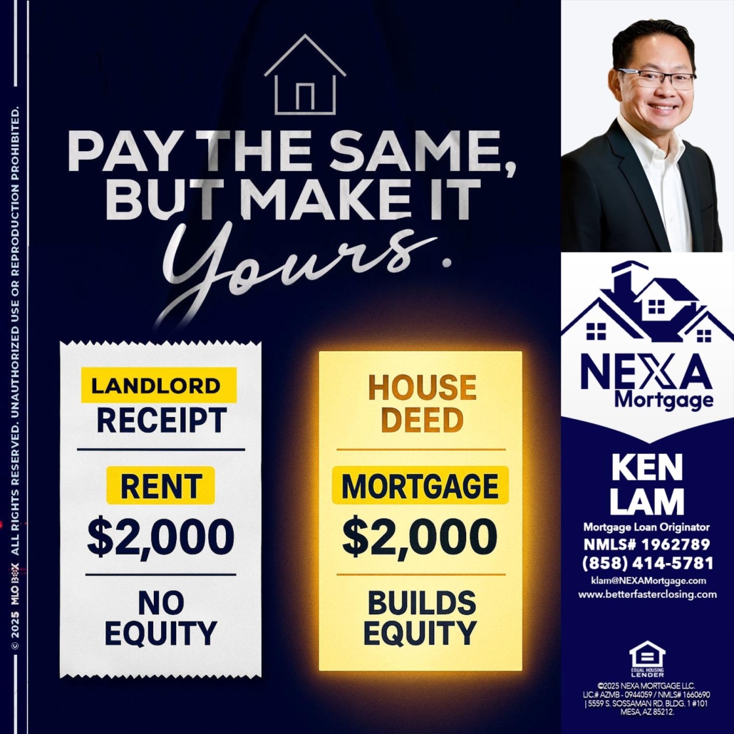 Hi, my name is Ken Lam. I’m a Loan Officer with NEXA Mortgage LLC., offering personalized mortgage solutions, fast customized quotes, great rates and service with integrity.