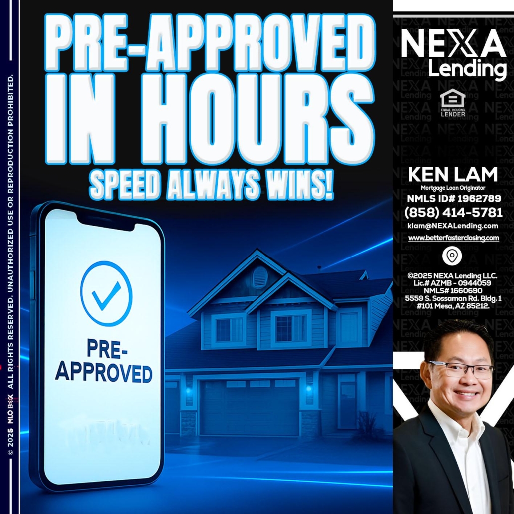 PRE - Ken Lam -Mortgage Loan OfficerHi, my name is Ken Lam. I’m a Loan Officer with NEXA Mortgage LLC., offering personalized mortgage solutions, fast customized quotes, great rates and service with integrity.