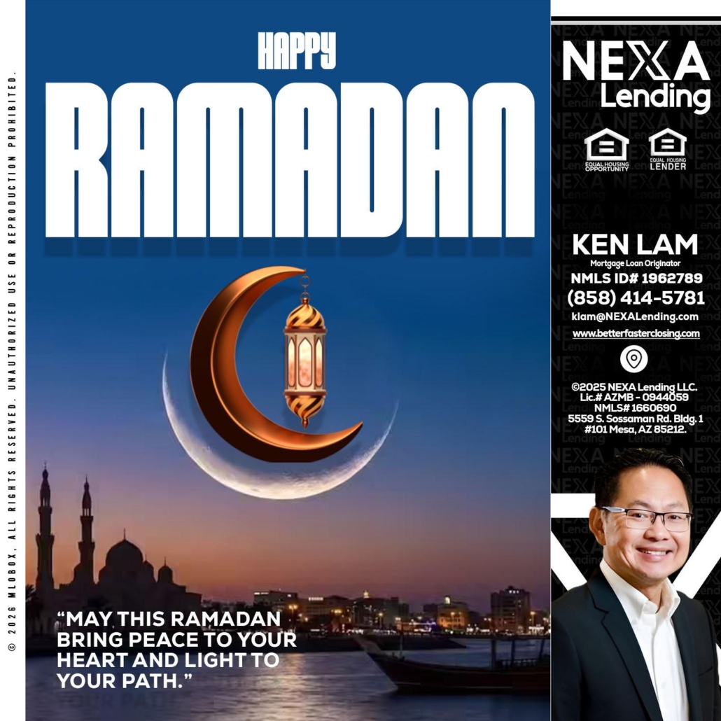 RAMADAN - Ken Lam -Mortgage Loan OfficerHi, my name is Ken Lam. I’m a Loan Officer with NEXA Lending LLC., offering personalized mortgage solutions, fast customized quotes, great rates and service with integrity.
