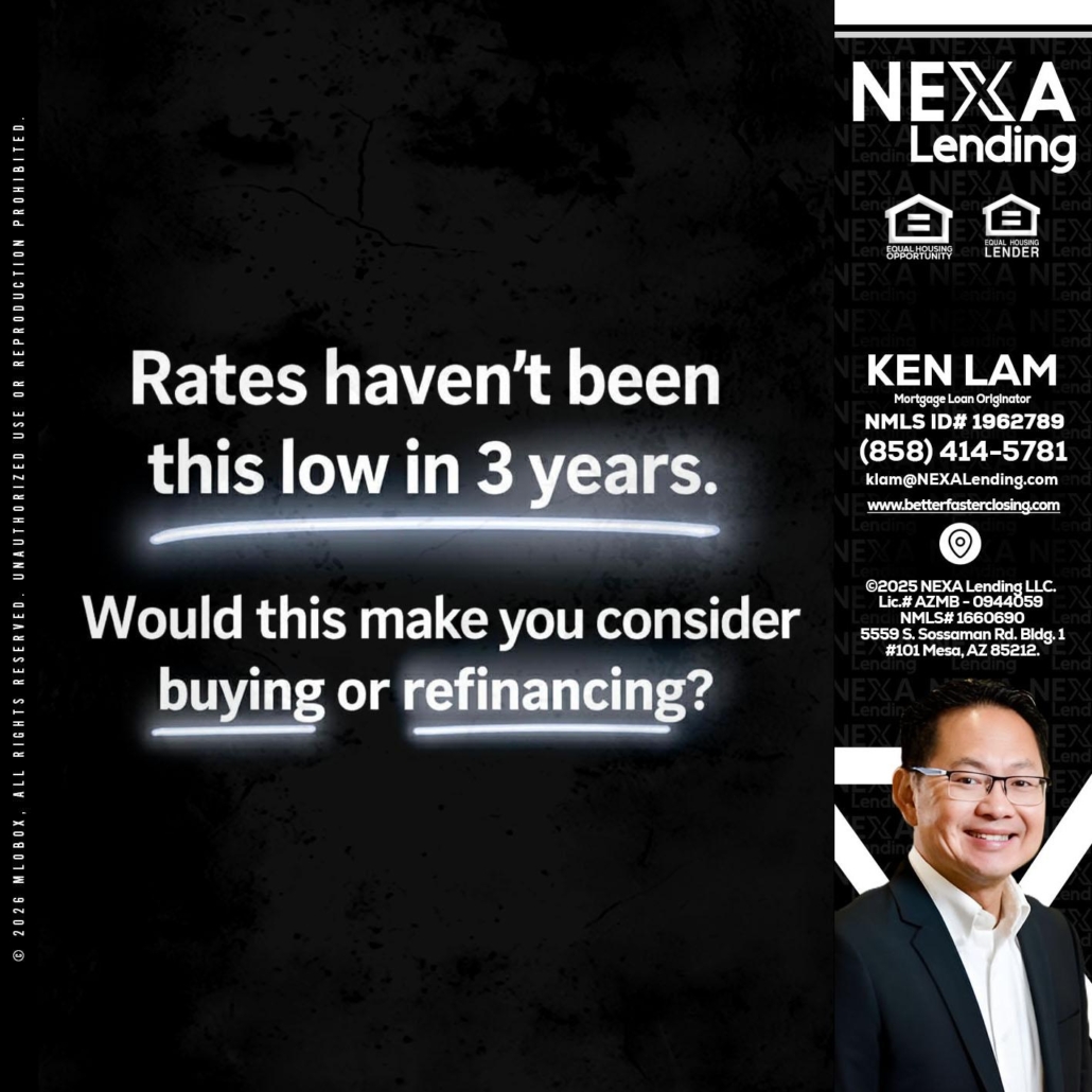 Hi, my name is Ken Lam. I’m a Loan Officer with NEXA Lending LLC., offering personalized mortgage solutions, fast customized quotes, great rates and service with integrity.