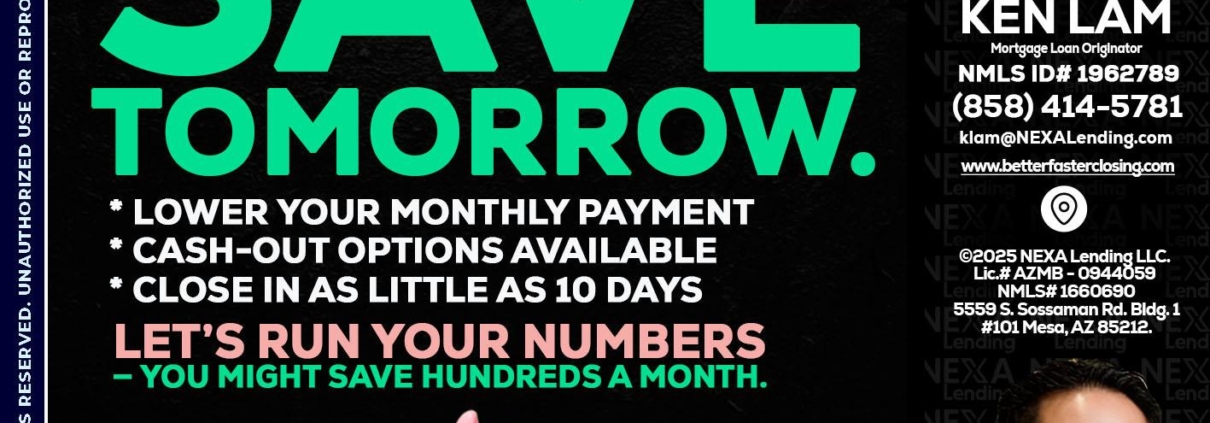 Hi, my name is Ken Lam. I’m a Loan Officer with NEXA Mortgage LLC., offering personalized mortgage solutions, fast customized quotes, great rates and service with integrity.