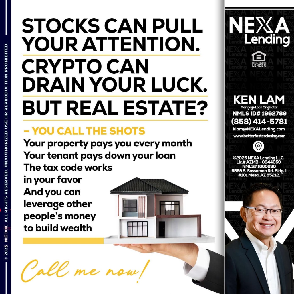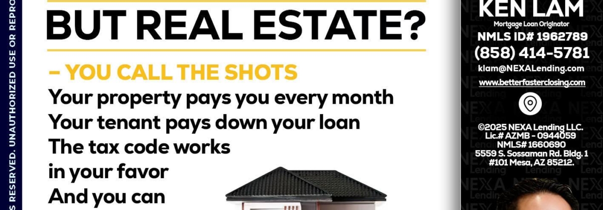 Hi, my name is Ken Lam. I’m a Loan Officer with NEXA Mortgage LLC., offering personalized mortgage solutions, fast customized quotes, great rates and service with integrity.