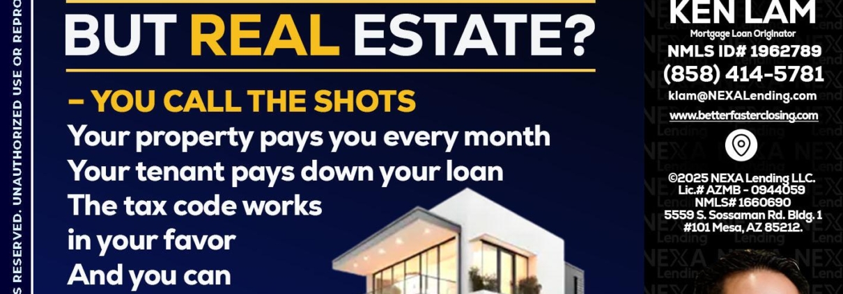 Hi, my name is Ken Lam. I’m a Loan Officer with NEXA Mortgage LLC., offering personalized mortgage solutions, fast customized quotes, great rates and service with integrity.