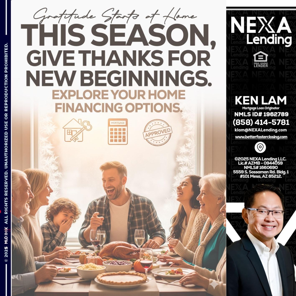 Hi, my name is Ken Lam. I’m a Loan Officer with NEXA Mortgage LLC., offering personalized mortgage solutions, fast customized quotes, great rates and service with integrity.