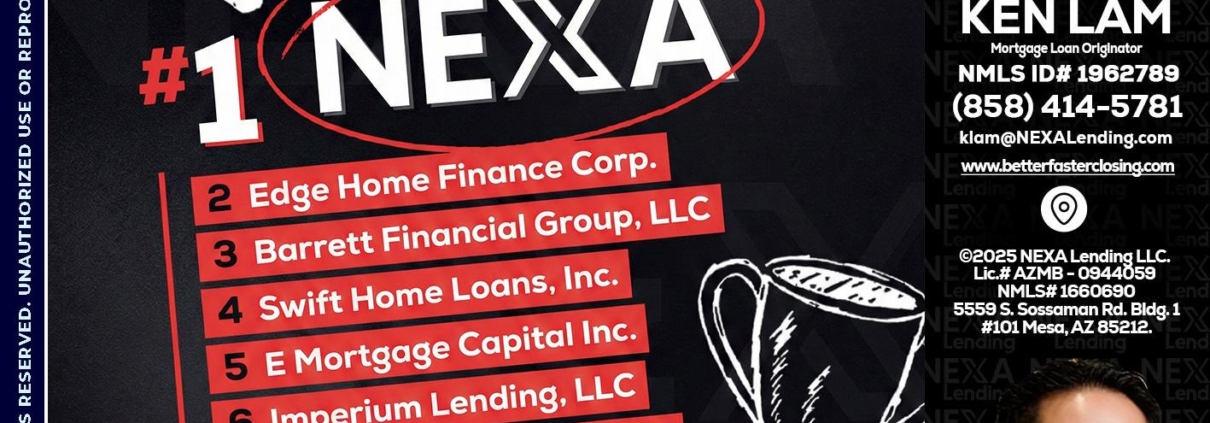 top broker - Ken Lam -Mortgage Loan OfficerHi, my name is Ken Lam. I’m a Loan Officer with NEXA Lending LLC., offering personalized mortgage solutions, fast customized quotes, great rates and service with integrity.