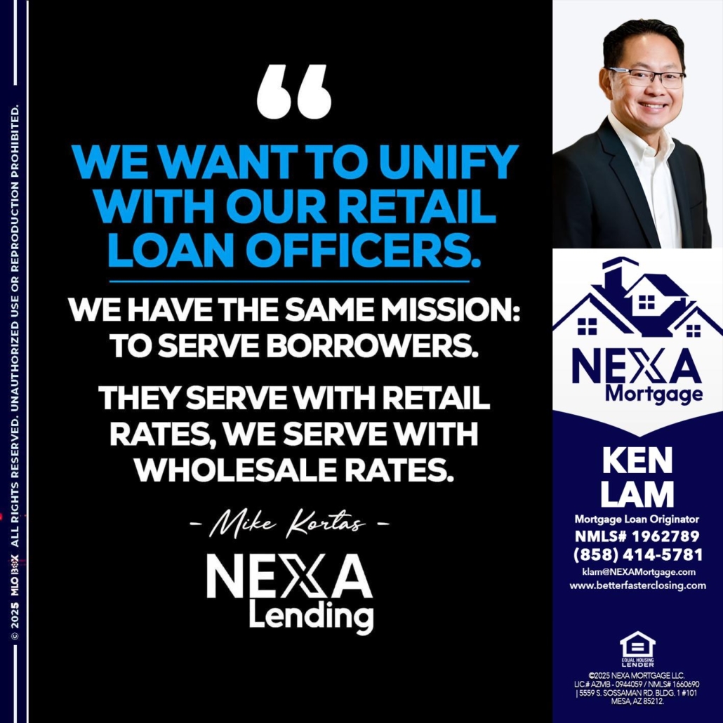 Hi, my name is Ken Lam. I’m a Loan Officer with NEXA Mortgage LLC., offering personalized mortgage solutions, fast customized quotes, great rates and service with integrity.