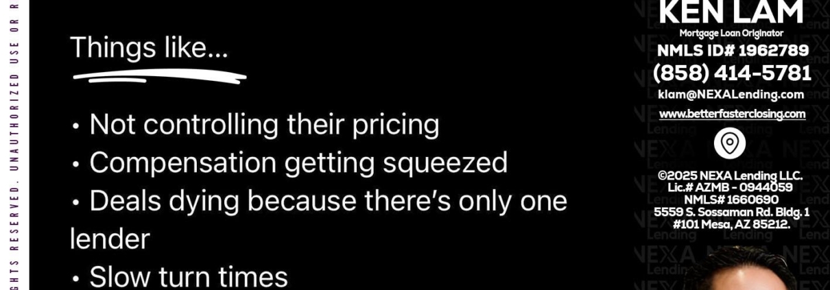 Hi, my name is Ken Lam. I’m a Loan Officer with NEXA Lending LLC., offering personalized mortgage solutions, fast customized quotes, great rates and service with integrity.