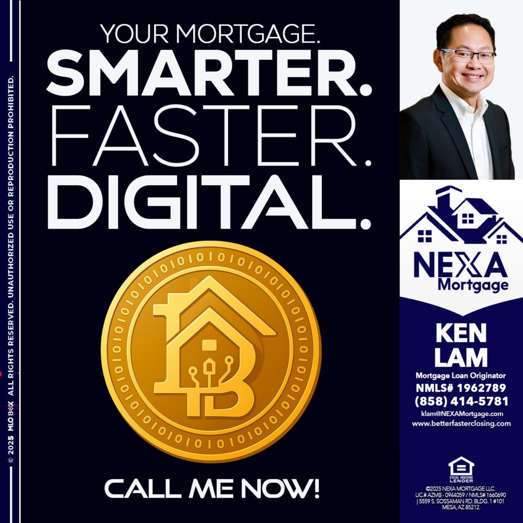 YOUR MORTGAGE - Ken Lam -Mortgage Loan OfficerHi, my name is Ken Lam. I’m a Loan Officer with NEXA Mortgage LLC., offering personalized mortgage solutions, fast customized quotes, great rates and service with integrity.